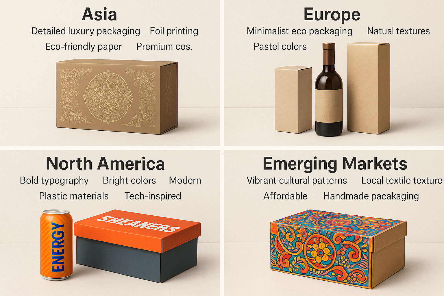 패키징은 단순한 포장재를 넘어 브랜드 경험의 시작점입니다. 현재 세계 시장은 친환경 전환, 디지털 기술 융합, 감성 스토리텔링, 소비자 참여 확대라는 네 가지 흐름 속에서 빠르게 진화하고 있습니다. 이 글은 아시아, 유럽, 북미, 신흥시장의 패키징 전략을 비교 분석하며, 디자인·소재·기술적 차이와 문화적 배경, 소비자 반응, 대표 브랜드 사례까지 심층적으로 다룹니다.